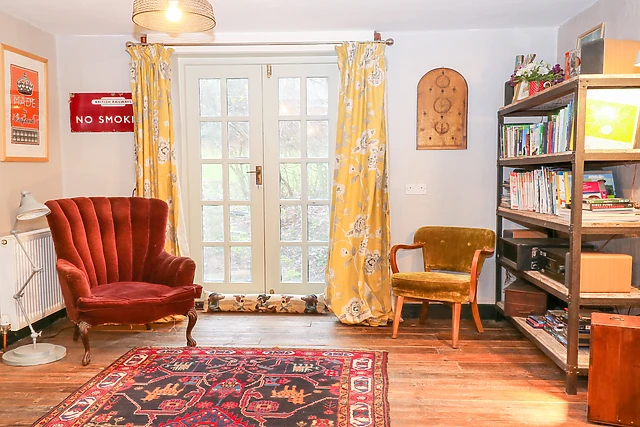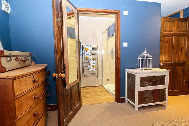 Upstairs are four bedrooms: two king-size and two doubles, with one bedroom housing a bookcase across one wall, stocked full with books to choose from and enjoy while in bed of an evening or early morning. There are two en-suite shower rooms and a family shower room, with modern fixtures and fittings, making it a wonderful and relaxing experience.