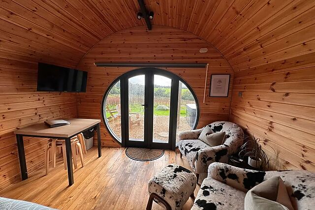 Be welcomed into the open-plan living space, where you will find a well-equipped kitchen for rustling up tasty dishes, ready to savour at the dining table over a celebratory bottle of fizz, and a sitting area with plush corner sofa and wall-mounted TV, perfect for snuggling up after an adventure filled day. On warmer days, why not dine alfresco out in your own private garden followed by a dip in the bubbling hot tub for an evening under the stars?