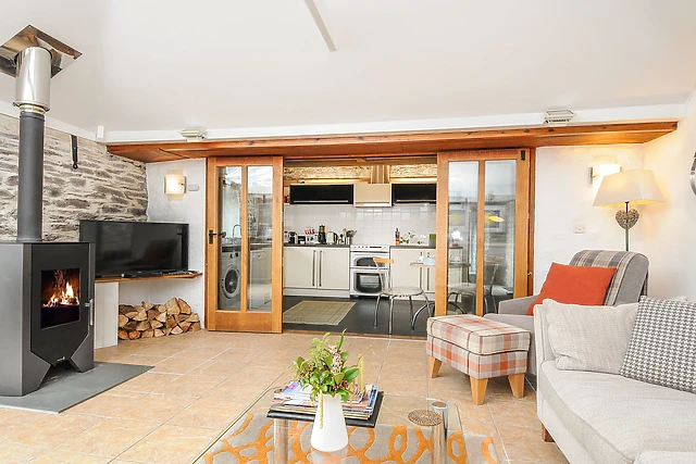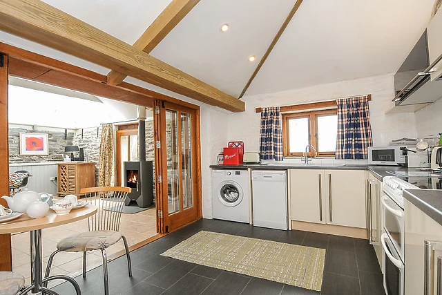 Relax in the big, light and airy sitting room with wood burning stove and dining area, filled with light from a large skylight in the lofty ceiling. There's a well-equipped kitchen for preparing tasty meals for enjoyment indoors or alfresco in the neat back garden with that wonderful hot tub and a very swish awning.