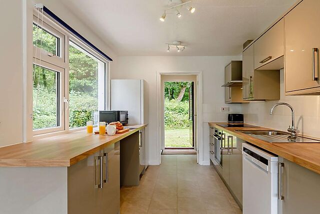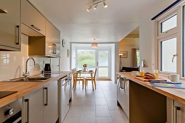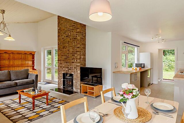 Living space - Spacious open-plan lounge, kitchen, and dining area filled with natural light. - Fully equipped kitchen including everything needed for cooking up Cornish feasts.