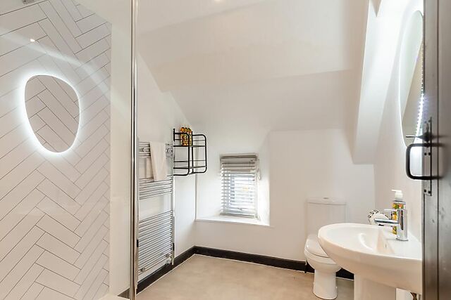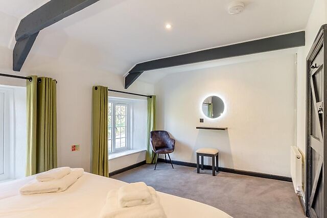 Two shower rooms serve the cottage; one features a refreshing rainfall shower. Thoughtful touches include built-in wardrobes, coat hangers and a dressing table with a mirror.