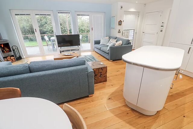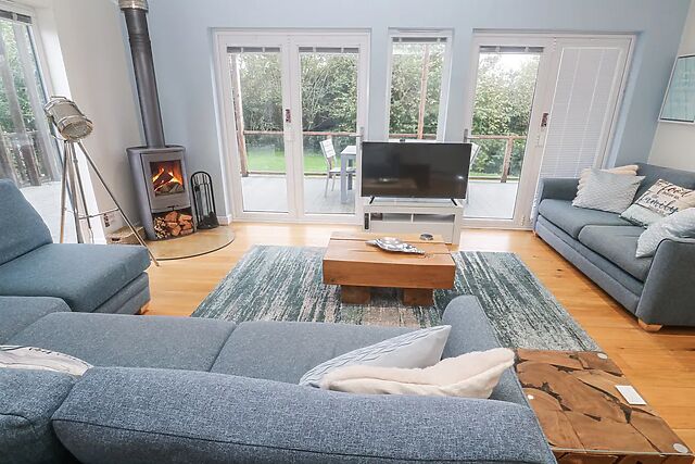 If the evening breeze sends a shiver down your spine, then head back indoors to warm up by the woodburning stove. All agree on a show to watch on the Smart TV for some evening entertainment.