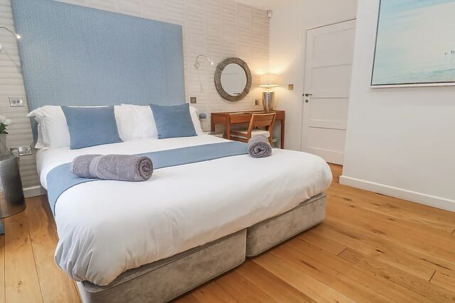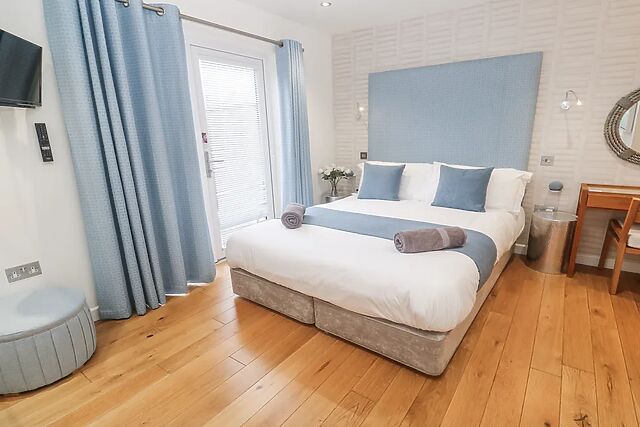 When a yawn comes along, make your way to one of the three neatly presented bedrooms. A king-size bed with a wall-mounted Smart TV and an en-suite shower room, a twin which can be made into a king-size bed, and another twin are on offer, both with TVs for those morning lie-ins.