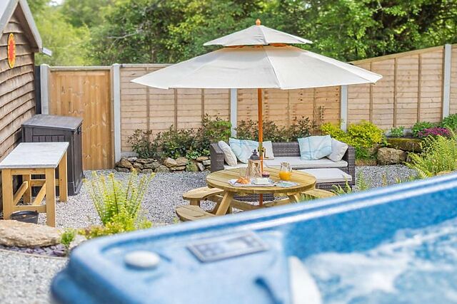 Designed with relaxation in mind, the lodge boasts a beautifully enclosed garden with multiple levels, providing various spots to sit back and soak up the tranquil surroundings. Whether you're looking to explore the scenic trails nearby or simply enjoy a romantic evening by the fire pit, The Cabin Retreat is the ideal destination for a memorable break.