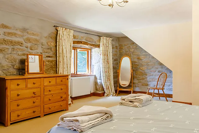 With an enclosed garden and patio complete with a BBQ, this holiday home is ideal for alfresco dining and relaxation. The farmhouse-style interiors, complete with exposed beams and traditional Cornish granite, create a warm and inviting atmosphere.