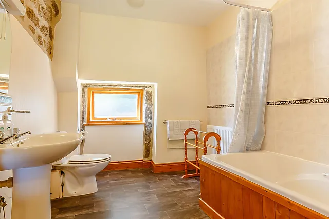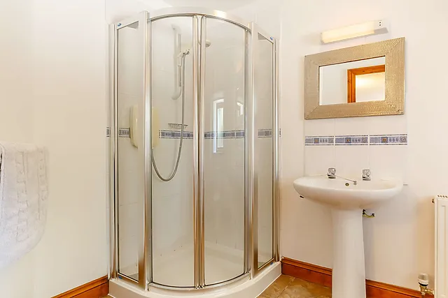 The accommodation features two well-appointed bedrooms, one with a double bed and an en-suite, and the other with twin beds, ensuring a restful night's sleep for all guests.
