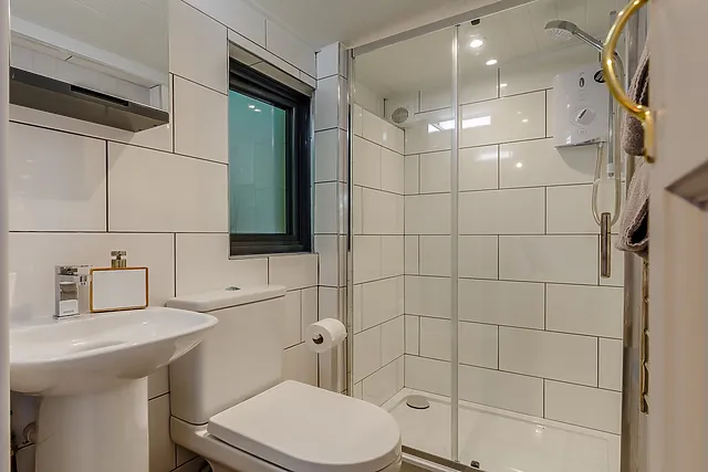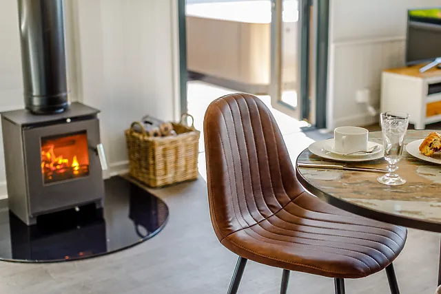 Inside, a king-size bed awaits for a restful night's sleep, and the modern en-suite shower room adds to the convenience. The kitchen is well-equipped for your culinary needs, and the inviting lounge area, with its wood burner and Smart TV, is the perfect spot to relax after a day of exploring.