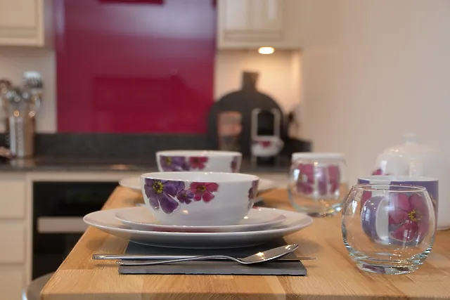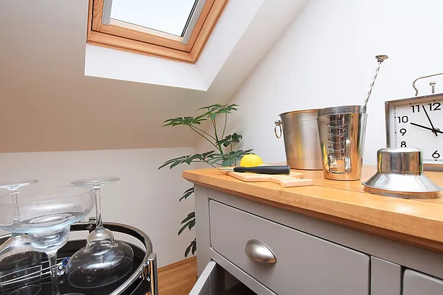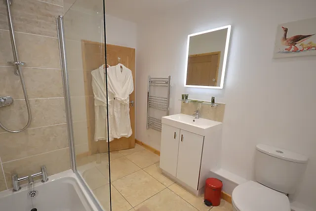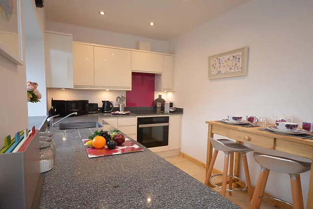 The property is equipped with a modern kitchen, complete with underfloor heating, ensuring a cosy experience throughout your stay.