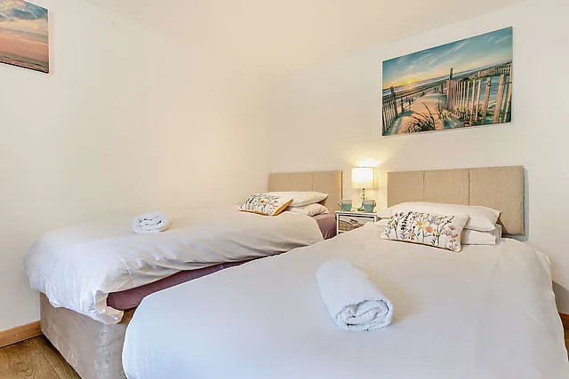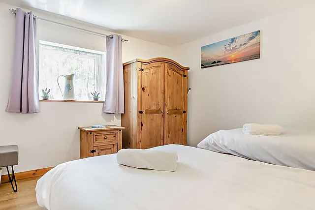 The accommodation sleeps up to 4 guests in two cosy bedrooms, one with a king-size bed and en suite wet room, and the other a twin room.