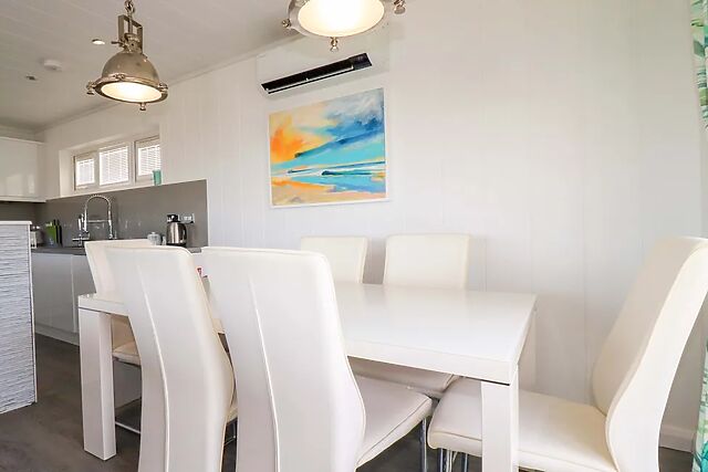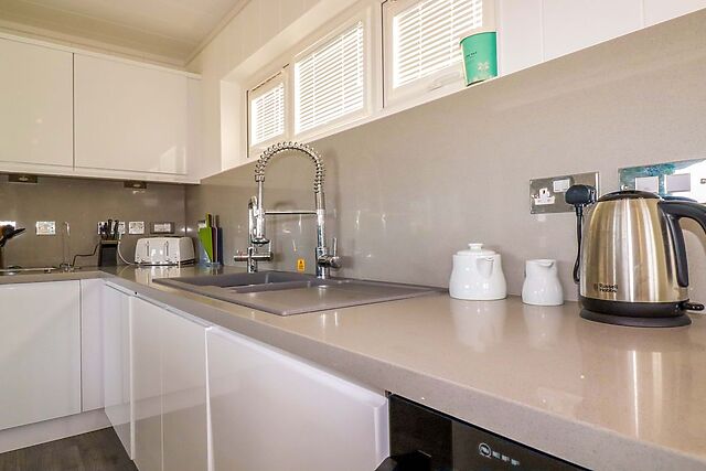 Step inside this contemporary retreat to find an inviting open-plan living space, combining a well-equipped kitchen, dining area, and sitting area for sociable moments. The kitchen offers everything needed for self-catering, while the sitting area features a Smart TV for relaxed evenings.
