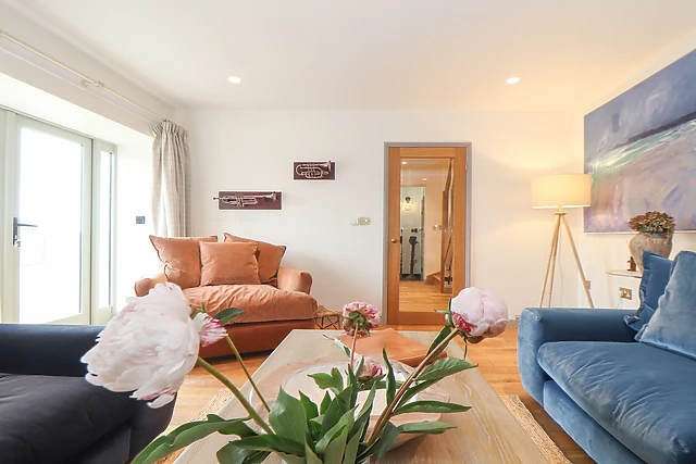 Enjoying sea views from the pet-friendly garden, whilst thoughtfully-furnished throughout with state-of-the-art appliances, plush soft furnishings, complimentary toiletries, and renowned, local artwork, The Riblows offers a magnificent dwelling for a family of six, looking to explore the delights of Cornwall. Arrive to a gated, private driveway, providing plenty of space to park up, unload your belongings and benefit from the free electric car charging; take this time to appreciate the pretty blooms, luscious lawn and tranquil setting enveloping your new home.