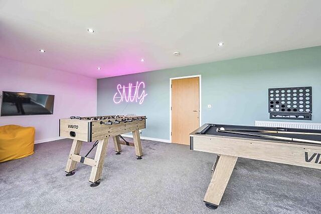 The Snug features a private hot tub, perfect for unwinding after a day of exploring Cornwall. The lodge also boasts a games room with a pool table, table football, and a scramble wall, ensuring entertainment for all ages.
