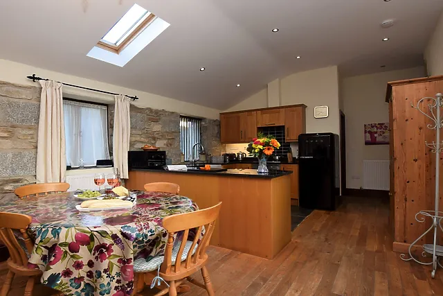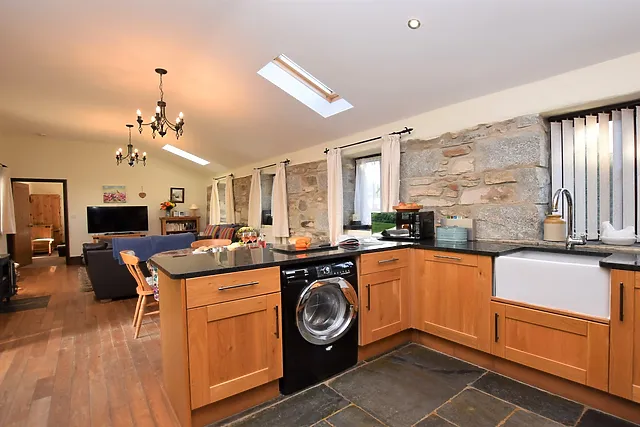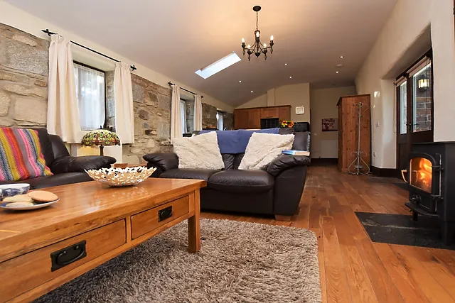 The barn boasts a beautifully appointed open-plan living space, complete with a wood burner for those cooler evenings, ensuring a cosy and inviting atmosphere throughout your stay.