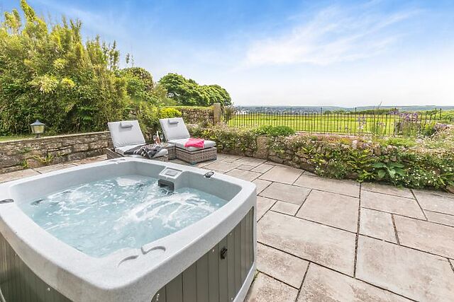 The garden includes a raised lawn, mature trees and shrubs, and a patio terrace with sun loungers, garden furniture and – the piece de resistance – a hot tub. This is the perfect spot to breathe in the fresh air and enjoy the panoramic vistas while you soak in the bubbles or dine alfresco.