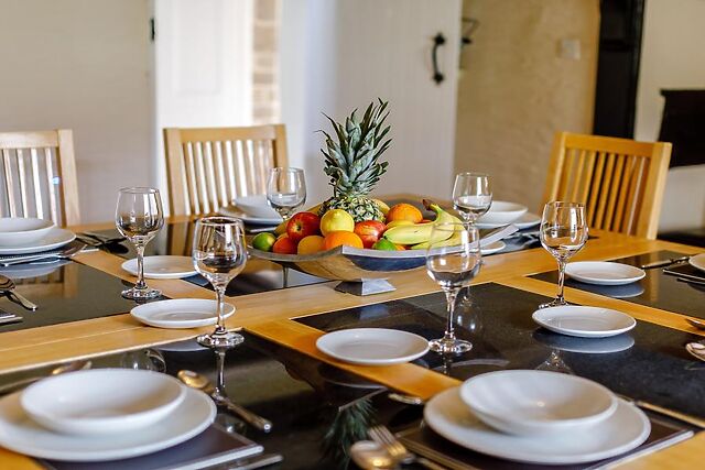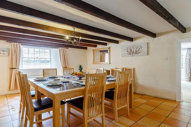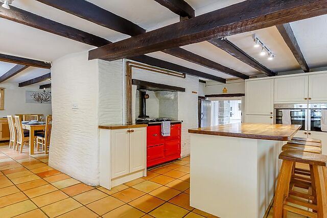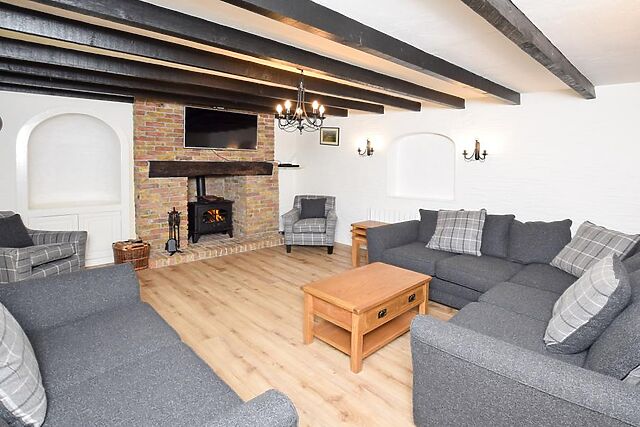 Inside, the farmhouse exudes traditional charm with exposed beams, tiled floors, and a cosy wood burner. The kitchen is fully equipped for entertaining, and the snooker room provides hours of fun.