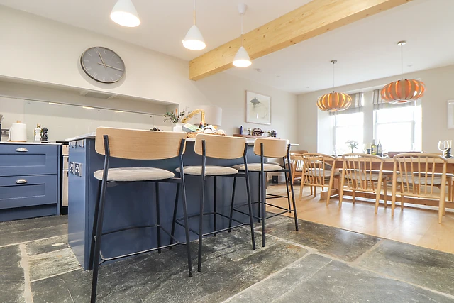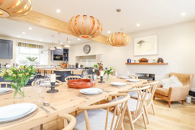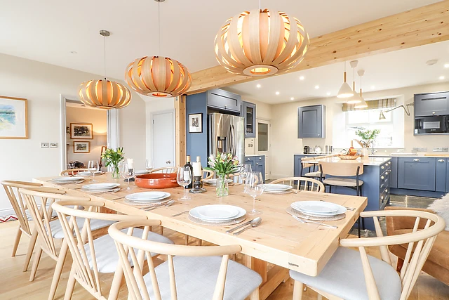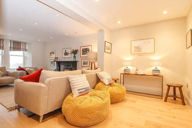 As the night rolls in, venture to the first floor and discover three tasteful bedrooms, including two super-king-size rooms with zip/link beds and a king-size room with a four poster bed and a stunning en-suite bathroom, along with a family bathroom. Up another set of stairs leads to the family room which can be arranged with five single beds or a super-king-size bed with three singles, perfect for the younger guests, plus there is another handy bathroom across the small landing.