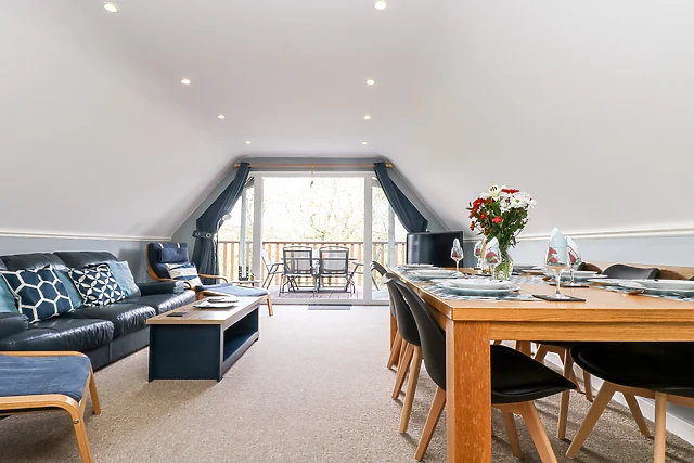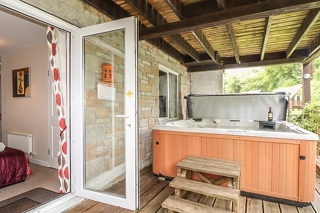 Indulge in ultimate relaxation with the lodge's private hot tub, an ideal spot to unwind after a day of Cornish adventures.