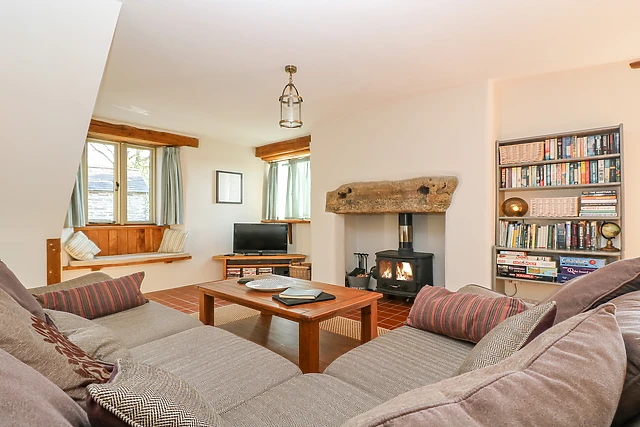 A wood burning stove, plump sofa, books, oak furniture and bold artwork furnish a spacious sitting/dining room and a warming flame-fronted wood-pellet boiler is an attractive focal point in the kitchen. Take a post ramble soak in the hot tub or an invigorating shower in one of two bathrooms before retiring to sumptuous bedrooms.