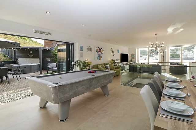 12 Beachdown rests in Challaborough, within the South Devon Area of Outstanding Natural Beauty, offering a contemporary, reverse-level home for eight guests. Nestled near the shoreline, 12 Beachdown offers a stylish, well-equipped base for families and friends, looking to enjoy a seascape, complete with a private roof terrace, hot tub, pool table, and a sleek, open-plan living space.