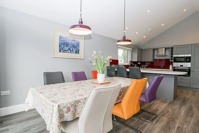 Cross the threshold into your new abode to discover a well-fitted kitchen, complete with all the expected appliances so the designated chef of the group can cook up a feast to enjoy at the dining table for six; after tucking into a feast, retire to the sitting area, snuggle up with your loved ones and enjoy some light entertainment with use of the TV. On balmy evenings, step out onto the wrap-around decking and relish a glass of wine, or two on the outdoor furniture; indulge a long soak in the bubbling hot tub as you plan for the days ahead.