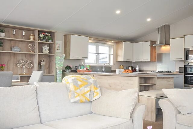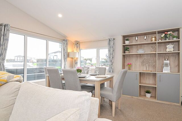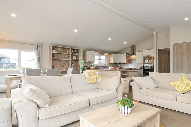 The fully-equipped kitchen has everything you need for relaxed holiday cooking, including an electric oven and hob, microwave, and fridge/freezer, while the dining area offers a spot to gather for meals and plan tomorrow’s adventures. Two plush sofas in the sitting area invite you to settle in for a film night on the Smart TV after a day on the coast.