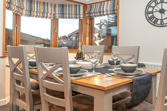 The lodge is all on the ground floor with open-plan kitchen, dining and lounge.
