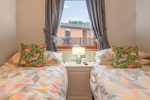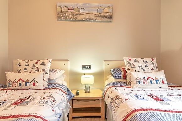 Bedrooms 2 and 3 are both twin rooms with two 3ft single beds each. There's also a family bathroom with bath and shower attachment.