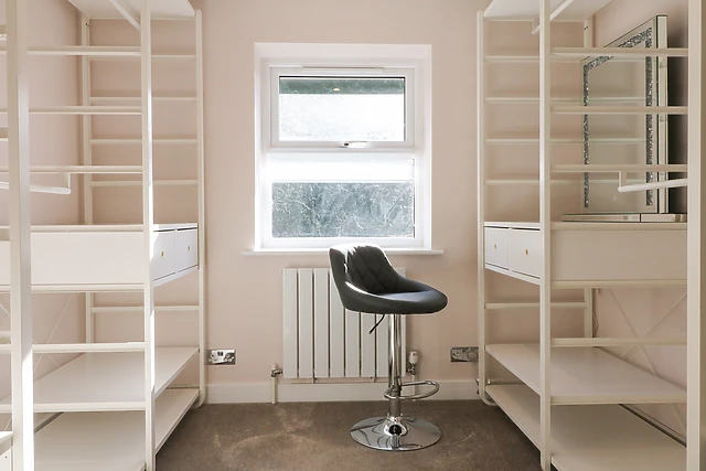The ground-floor bedroom offers added convenience for those who prefer easy accessibility.