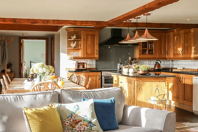 Embark on an idyllic retreat at the luxurious Apple Barn, a stunning accommodation nestled in the serene North Devon countryside. This beautifully appointed cottage comfortably sleeps up to 10 guests across five tastefully decorated bedrooms, ensuring ample space for families or groups seeking a tranquil escape.