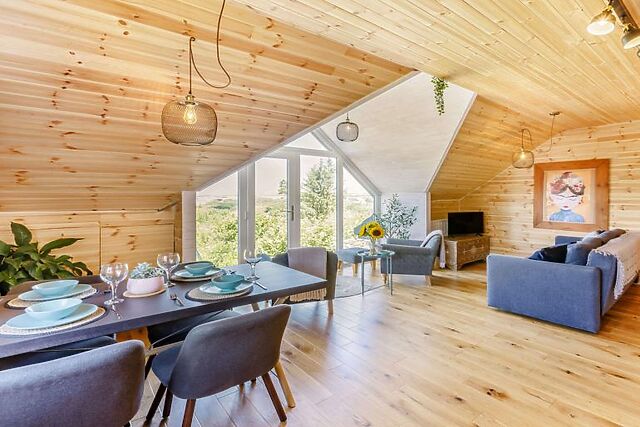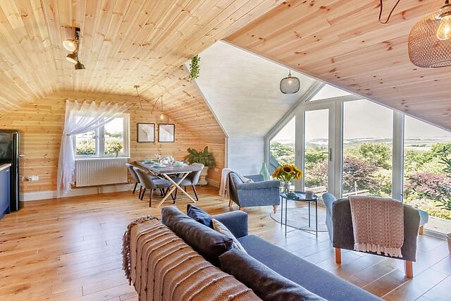 Step outside to discover your private decked patio, complete with a sunken hot tub, where you can unwind and soak in the warmth while admiring the views. The enclosed garden and rustic fire pit provide the ideal setting for memorable evenings under the stars.
