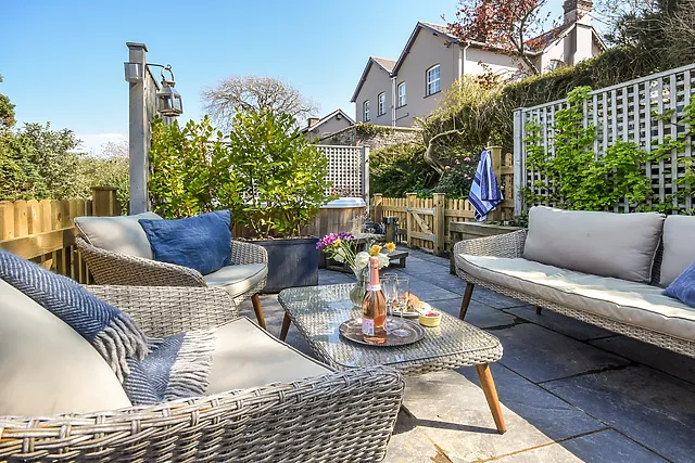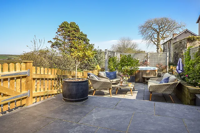 Yes, the property features a private hot tub in the lovely enclosed tiered sun-trap patio area, which is perfect for unwinding after a day of activities or simply for a relaxing soak under the stars.