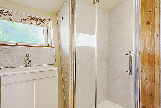The double bedroom with an en-suite shower room ensures a restful night's sleep. Step outside to the terrace and unwind in the private hot tub while soaking up the stunning countryside views.