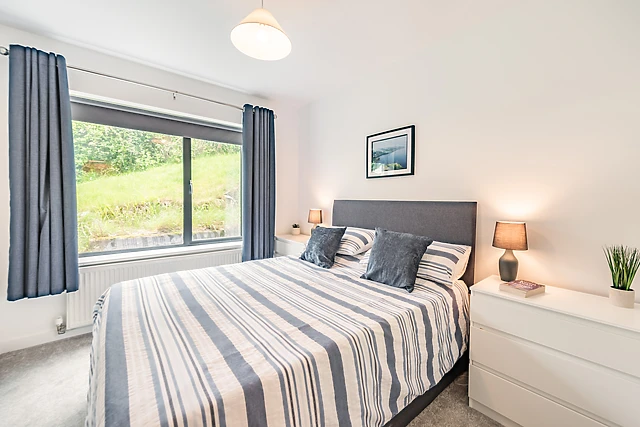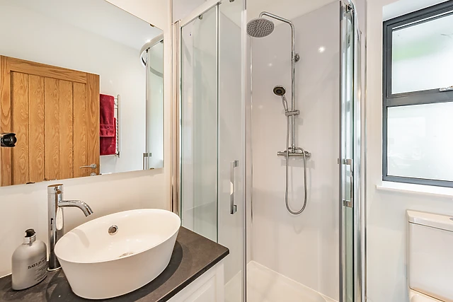 Take a bottle from the wine chiller and pour yourself a drink to take out to the decked area, whilst there is also a lower patio adjacent to the parking area, and a hot tub that offers an idyllic spot to unwind in the evenings. The first bedroom lies on the ground-floor and offers a twin, whilst there is also a king-size with en-suite shower off the living area, whilst upstairs plays host to two king-sized bedrooms, both with velux windows providing excellent views and convenient en-suite shower rooms.