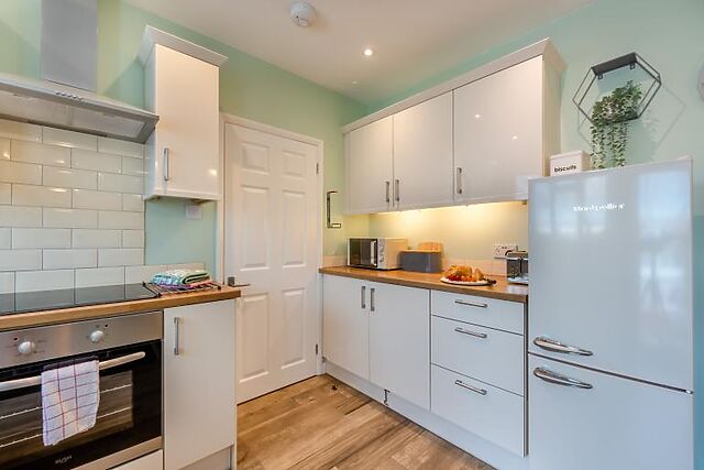 Step inside and you'll find a cosy lounge with sumptuous sofas and a Smart TV, ideal for unwinding after a day of exploring. The stylish kitchen and dining room are fully equipped for all your cooking needs, and there's even a TV to keep you entertained while you cook.