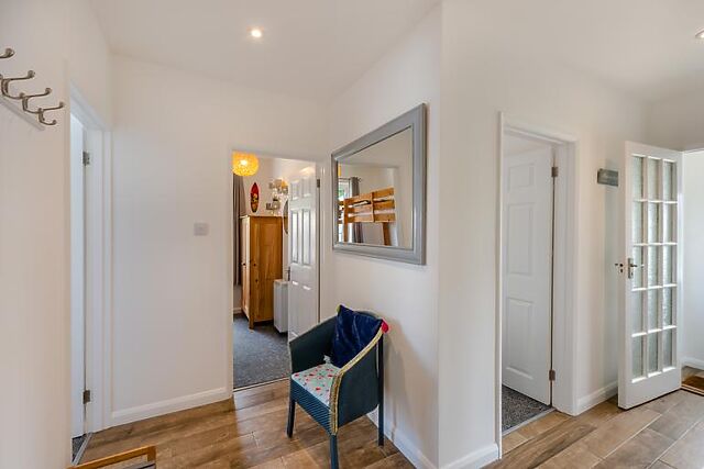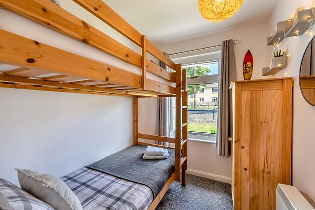 The accommodation includes a king-size bedroom, a double bedroom, and a bunk bedroom, making it perfect for families or groups of friends.