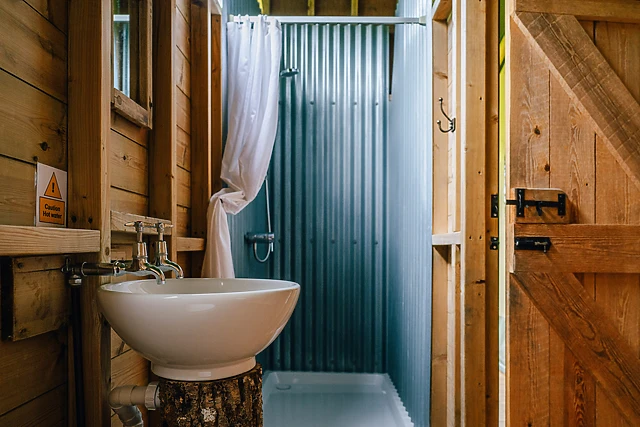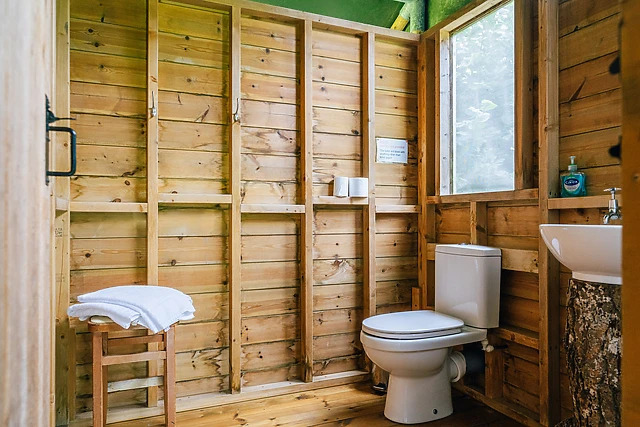 A private bathroom with flushing toilet and hot running shower. Outside, Beech unveils a front lawn adorned with furniture, a wood-fired hot tub, fire pit, and barbecue, granting access to the surrounding fields.Walk across the field to the pub, let the children explore the den and mud kitchen and build dams.