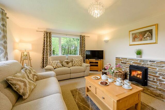 The family-friendly bungalow also boasts a private enclosed garden and woodland area, perfect for children and pets to safely explore.
