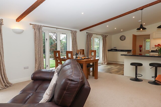 Inside, you will be welcomed by a spacious open-plan area, thoughtfully laid out to include a well-equipped kitchen, a dining room with a table for four, and a welcoming sitting room with a TV. This space is perfect for gathering with your loved ones, whether you're cooking up a storm, enjoying a leisurely meal, or settling down for a night in front of the television.