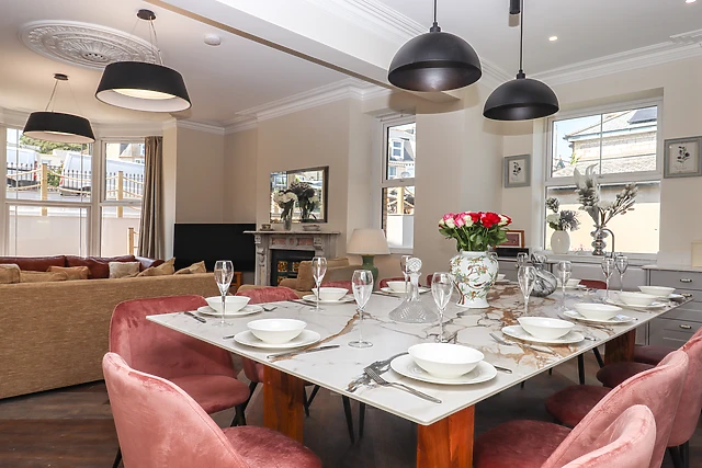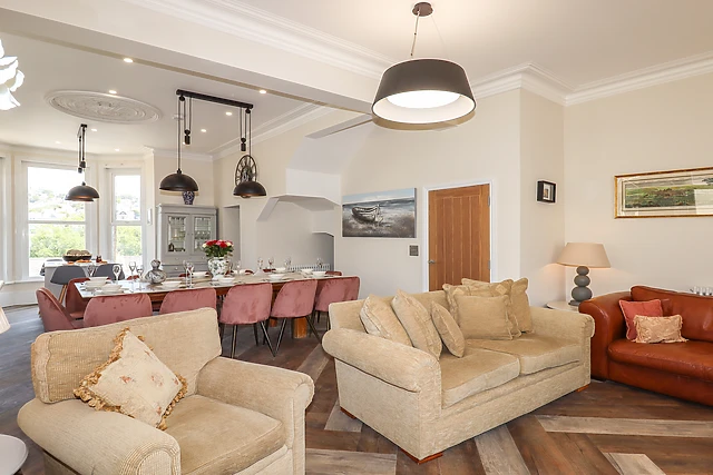 Enjoying stunning sea views across the Devonshire coastline in Ilfracombe is Bradley House, a fabulous, seven-bedroom home. Just paces away from the beach and a hub of activity, Bradley House offers a contemporary, well-equipped base for a family of fourteen, complete with a multi-level garden with hot tub, en-suite bedrooms, and a private games room.