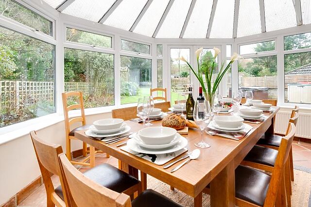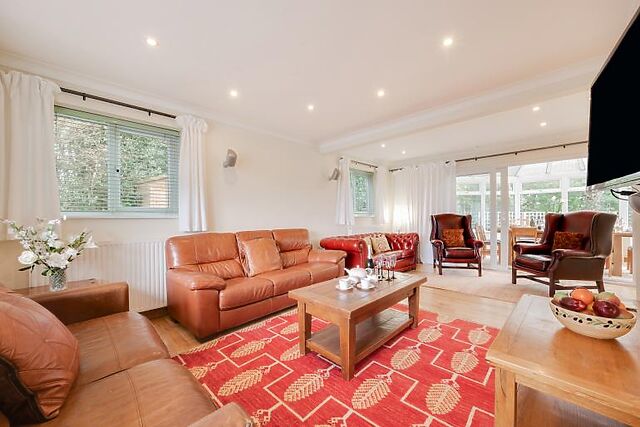 Inside, you'll find a large living room that flows into a light-filled conservatory, offering ample space to unwind.