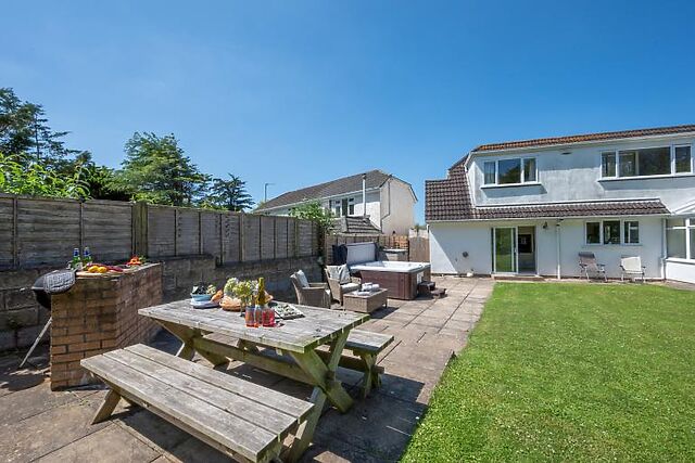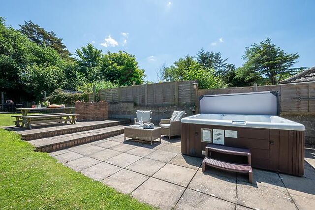 The property boasts a fabulous garden with plenty of seating, a BBQ, and a hot tub for ultimate relaxation.