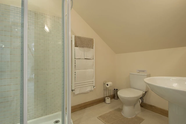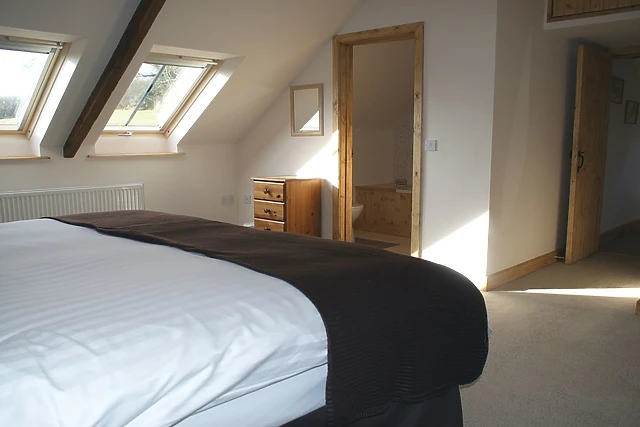 Inside, the cottage is smart and comfy with an open plan living space with cosy wood burning stove, well equipped kitchen and dining area. Snugly situated upstairs under the eaves are the two bedrooms with generous sized beds and the added luxury of both having an en suite bathroom or shower room.