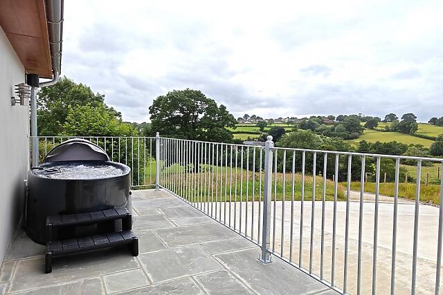 At the front, the raised terrace has a hot tub where you can lie back in the bubbles beneath unspoilt starscapes, and at the back, there's both a terrace and a lawn, plus bistro-style furniture, a BBQ and fire pit for the ultimate al fresco dining experience. Private parking for two cars means you can explore the surrounding countryside at your leisure.