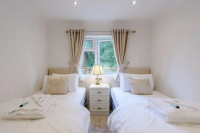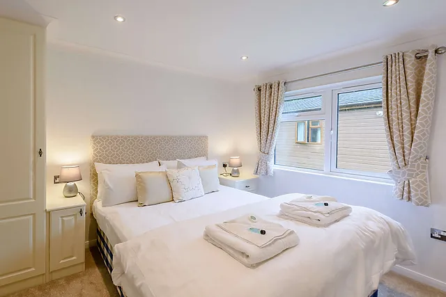 The lodge features two cosy bedrooms, a master double with an en-suite and a twin room, alongside a contemporary bathroom.
