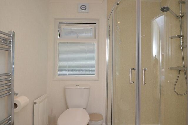 The accommodation sleeps up to four guests. It has two bedrooms, one with a double bed and an en-suite shower room, and another with two single beds, making it suitable for families or couples.
