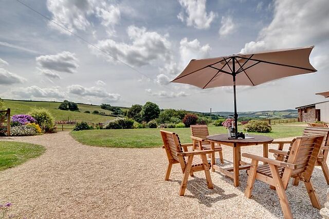 One of the highlights of Cider Pound is the shared hot tub, which offers stunning views over the rolling Devon countryside. The property also includes a shared utility room with washing machines and a tumble dryer, making it convenient for longer stays.