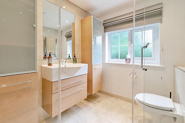 Make your way inside the detached country house via a side entrance that opens into a reception hall. From here, climb the stairs or take the stair lift up to the first floor of the property, where your private quarters are located.