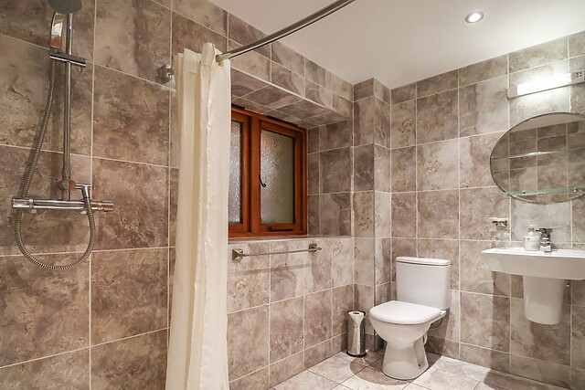 When it comes to bedtime, choose between the two double bedrooms both with en-suites. The ground floor bedroom has twin beds and an en-suite wet room, with a toilet support frame and seating for the shower available for guests with mobility issues.