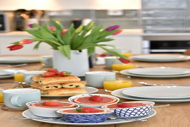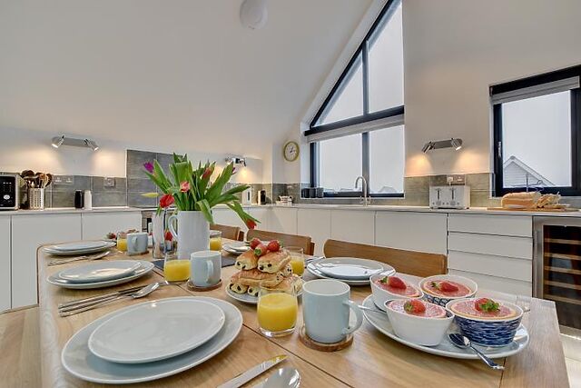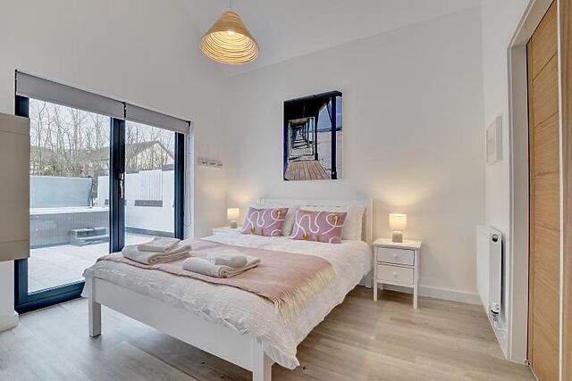 Inside, the cottage is equipped with modern amenities such as underfloor heating, a gas wood burner, and multiple Smart TVs. The kitchen comes fully equipped with an induction hob, electric oven, dishwasher, microwave, fridge/freezer, wine cooler, and Ninja Air Fryer.