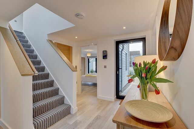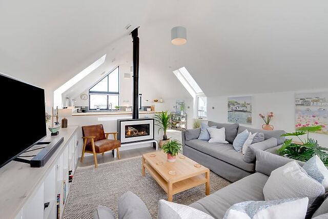 The open-plan lounge/kitchen/diner on the first floor is designed to make the most of the breathtaking coastal views.